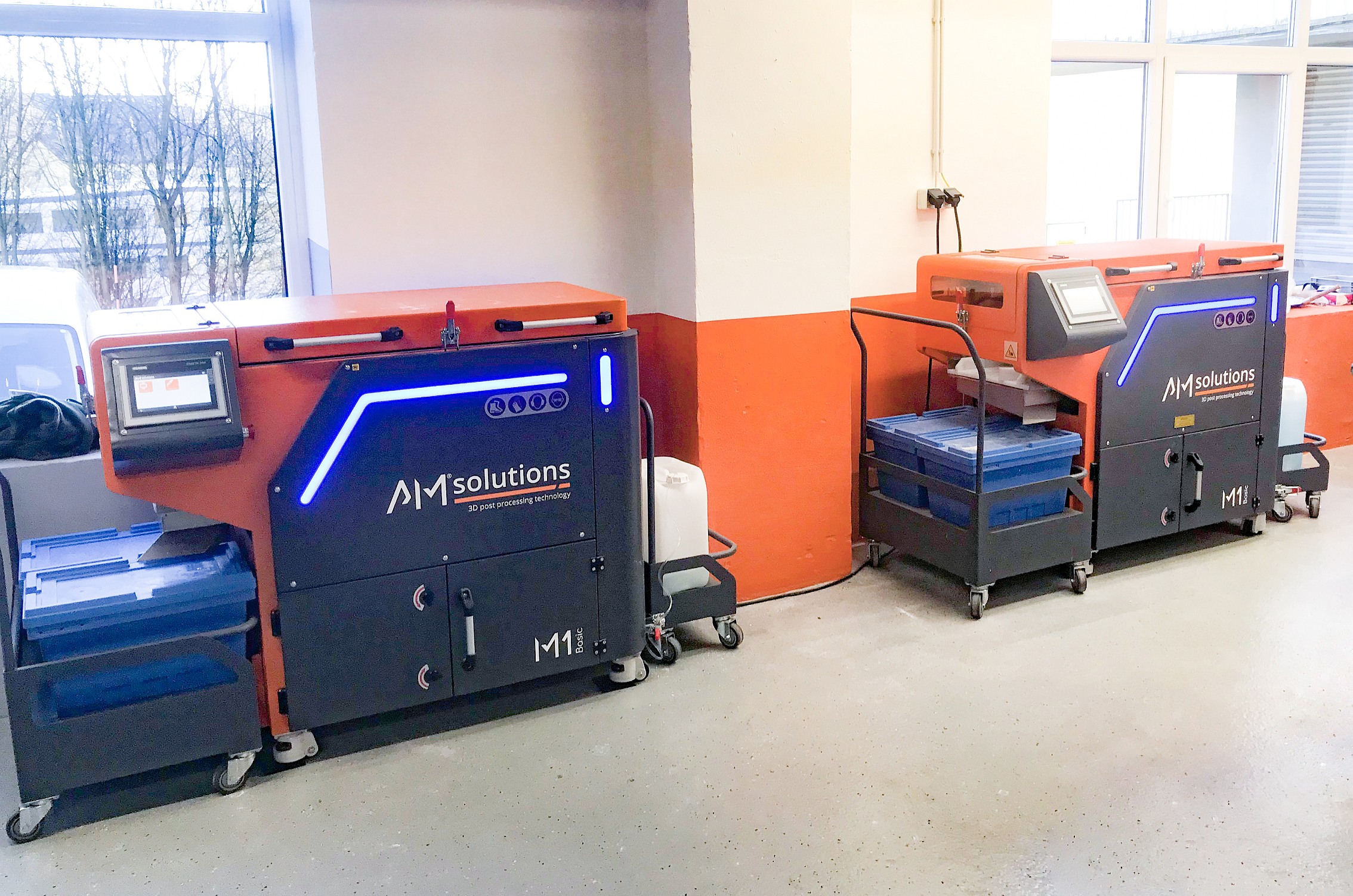 und Homogenisieren der Oberflächen von Kunststoffteilen sowie die Verringerung der Rauheitswerte sind Anforderungen, die von sehr vielen Kunden an den Dienstleister herangetragen werden. Mit der M1 Basic hat AM Solutions dafür eine Lösung, mit welcher diese Aufgabenstellungen schnell, reproduzierbar und prozesssicher durchgeführt werden können. „Bei einer Vielzahl von Bauteilen ist die Gleitschlifftechnik eine echte Alternative zum chemischen Glätten. Die Bearbeitung erfolgt im Vergleich deutlich kosteneffizienter,